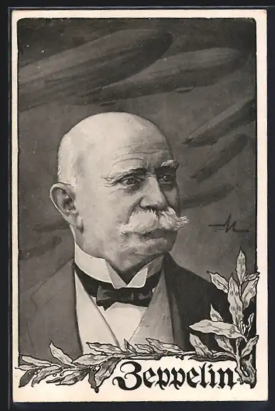 Künstler-AK Portrait Graf Zeppelin im Anzug