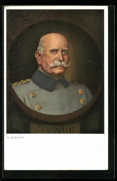Künstler-AK Portrait Graf Zeppelin in Uniform