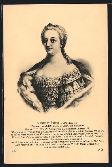 Künstler-AK Portrait Marie-Thérèse D` Autriche