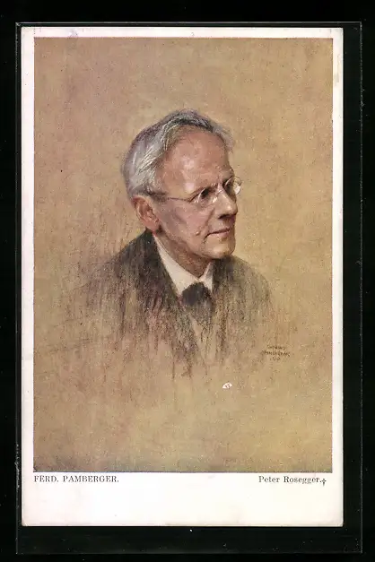 Künstler-AK Portrait Peter Rosegger bartlos und mit Brille