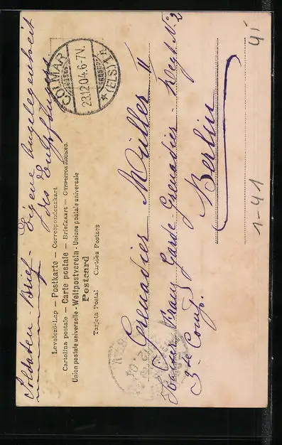 alte Ansichtskarte, gelaufen 1904 als Feldpost, Eckknick unten rechts, guter Zustand