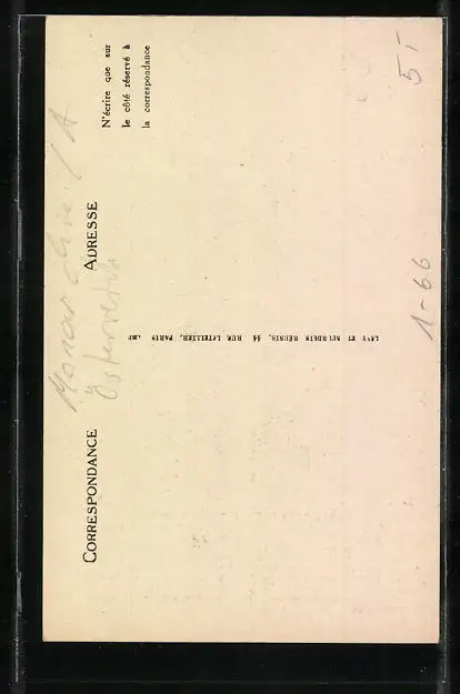 Personenbezogene Daten auf der Rückseite der Karte wurden durch blauen Textmarker unkenntlich gemacht. Die blauen Stellen sind auf die Vorderseite durchgeweicht und wirken sich negativ auf das Postkartenfoto aus