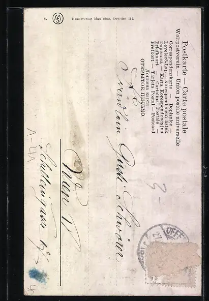 alte Ansichtskarte, gelaufen, Briefmarke tw. entfernt, rückseitig Oberflächenschaden, guter Zustand