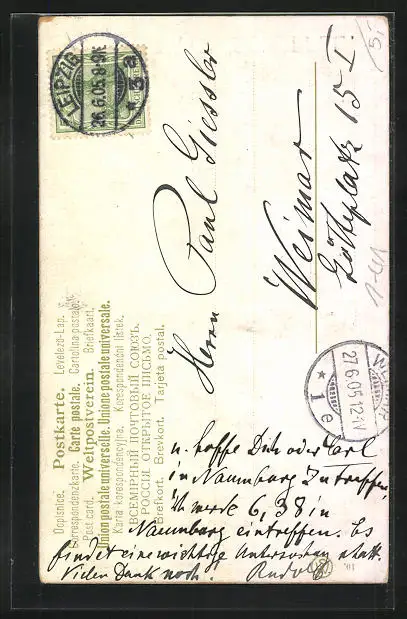 alte Ansichtskarte, gelaufen 1905, Bugspur rechts mittig, guter Zustand