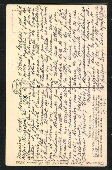 Künstler-AK Portraitzeichnung Maxim Gorki