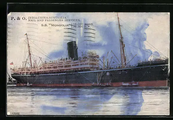 Künstler-AK Post- und Passagierschiff SS Mongolia in der Gesamtansicht