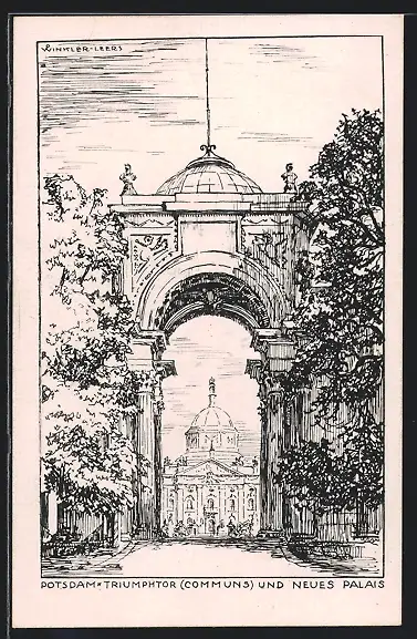 Künstler-AK Potsdam, Triumphtor und neues Palais