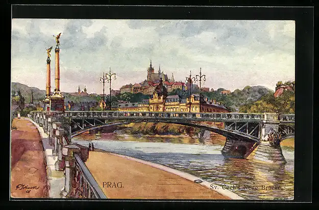 Künstler-AK Prag, Neue Brücke Svatopluk Cech