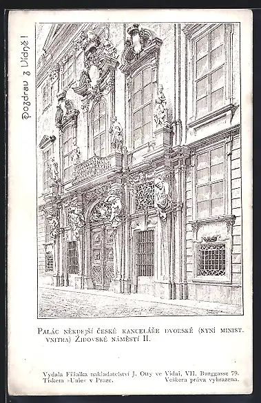 Künstler-AK Prag, Palast des ehemaligen Tschechischen Gerichts