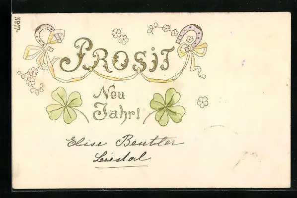 Künstler-AK Prosit Neujahr, Kleeblatt