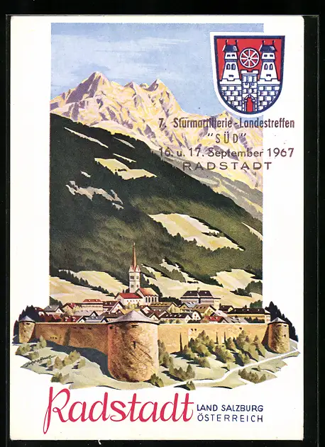 Künstler-AK Radstadt, Gesamtansicht, Wappen