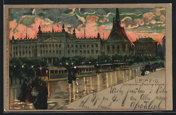 Künstler-AK Raffaele Carloforti: Leipzig, Universität und Paulinerkirche am Abend