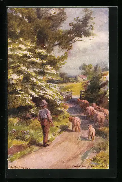 Künstler-AK Raphael Tuck & Sons Nr. 9031: Changing Pastures, Schäfer mit Herde
