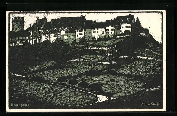 Künstler-AK Regensberg, Teilansicht