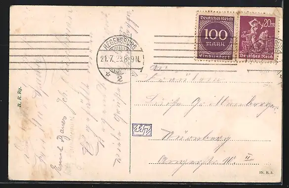 gelaufen 1923, Eckknick re. oben, guter Zustand