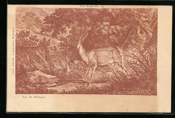 Künstler-AK Rehbock an einem Gewässer im Wald