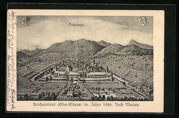 Künstler-AK Reichenweier /Ober-Elsass, Teilansicht 1644 nach Merian