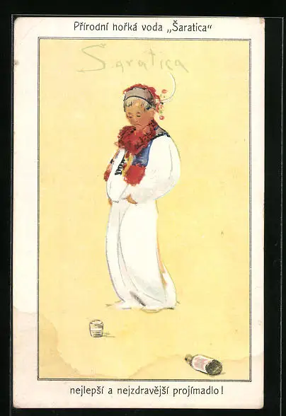 Künstler-AK Reklame für Heilwasser Saratica