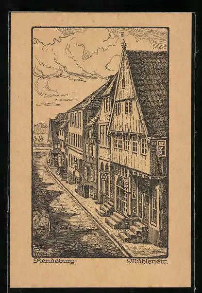 Künstler-AK Rendsburg, Partie in der Mühlenstrasse