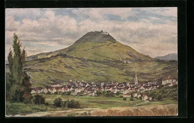 Künstler-AK Reutlingen, Ortsansicht mit Achalm