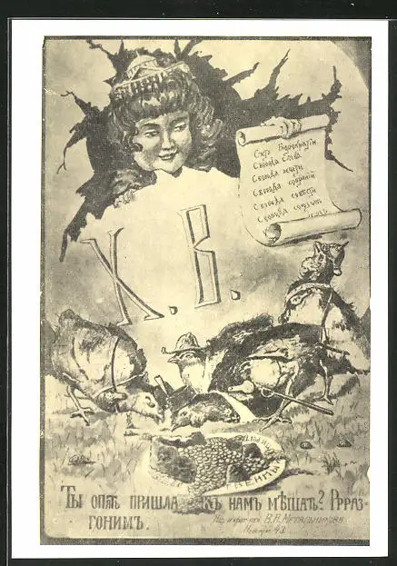 Künstler-AK Revolution 1905, Arbeiterbewegung, Aristokraten als Rebhühner