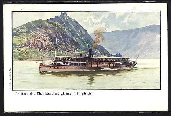Künstler-AK Rheindampfer Kaiserin Friedrich in Fahrt