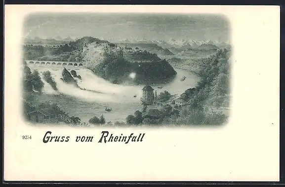Künstler-AK Rheinfall, Wasserfall mit Panorama