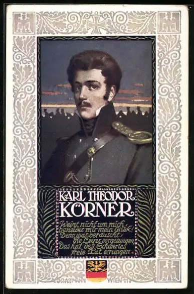 Künstler-AK Richard Assmann: Halbporträt Karl Theodor Körner in Uniform