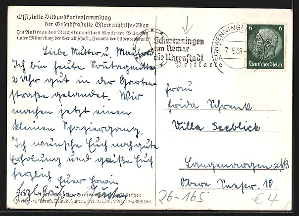 alte Ansichtskarte, gelaufen 1938, Eckknicke li., guter Zustand