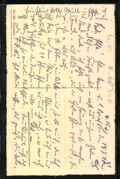 Personenbezogene Daten auf der Rückseite der Karte wurden durch blauen Textmarker unkenntlich gemacht. Die blauen Stellen sind auf die Vorderseite durchgeweicht und wirken sich negativ auf das Postkartenfoto aus