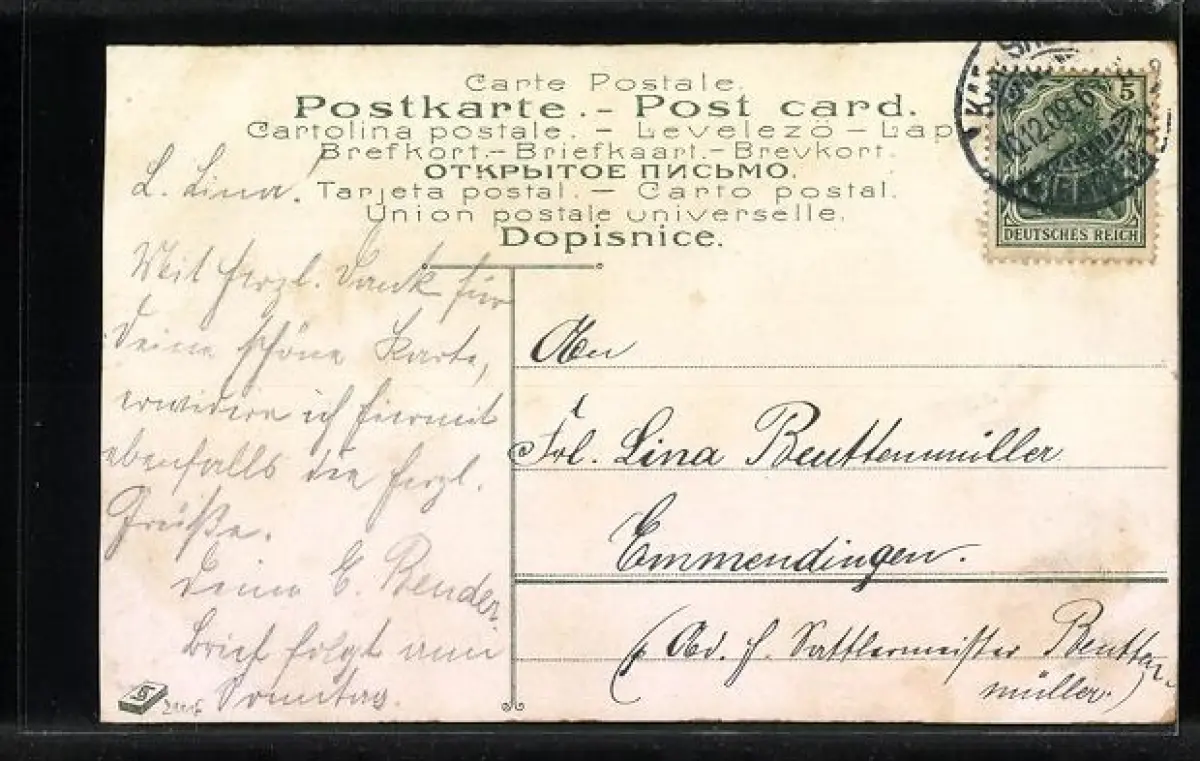 alte Ansichtskarte, gelaufen 1909, guter Zustand