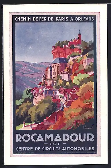 Künstler-AK Rocamadour, Ortspanorama mit Schloss