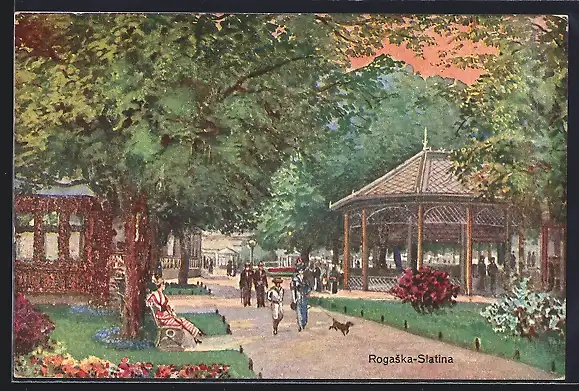 Künstler-AK Rogaska-Slatina, Flaneure im Park