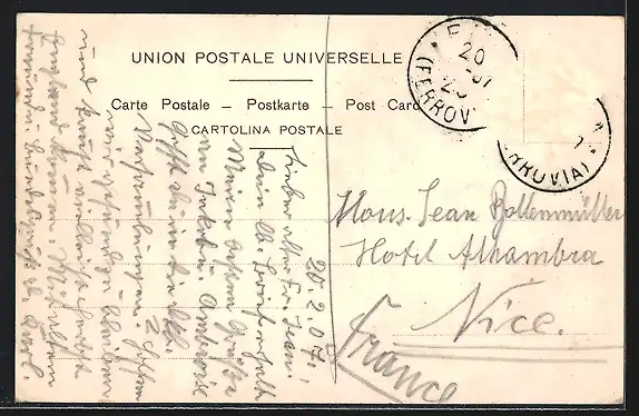 alte Ansichtskarte, gelaufen, Briefmarke entfernt, guter Zustand