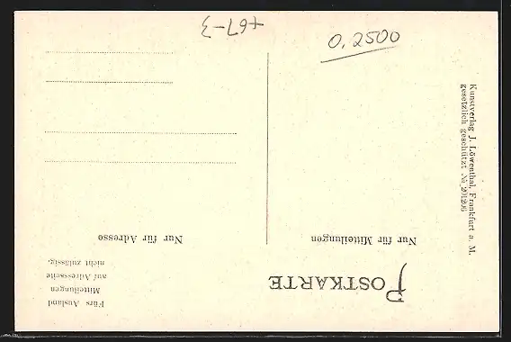 Personenbezogene Daten auf der Rückseite der Karte wurden durch blauen Textmarker unkenntlich gemacht. Die blauen Stellen sind auf die Vorderseite durchgeweicht und wirken sich negativ auf das Postkartenfoto aus
