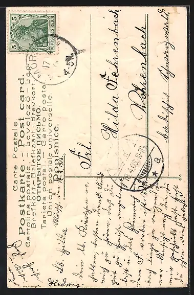 alte Ansichtskarte, gelaufen 1906, Bugspur re. oben, Stempelspur, guter Zustand