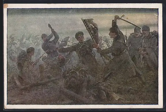 Künstler-AK Rotes Kreuz Nr. 433: Honved-Infanterieregiment Nr. 16 wehrt einen nächtlichen Angriff ab