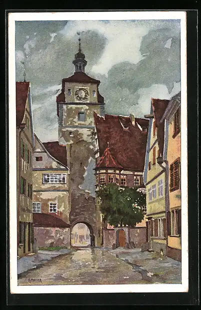 Künstler-AK Rothenburg o.T., Weisser Turm