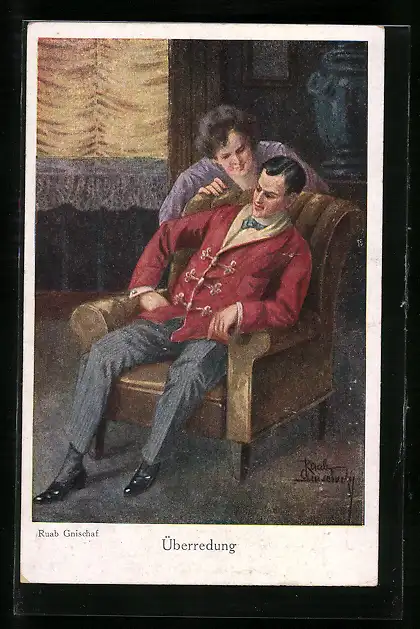 Künstler-AK Ruab Gnischaf: Überredung, Frau flirtet mit ihrem Liebsten