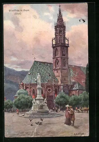 Künstler-AK Rudolf Alfred Höger: Bozen, Ansicht der Pfarrkirche