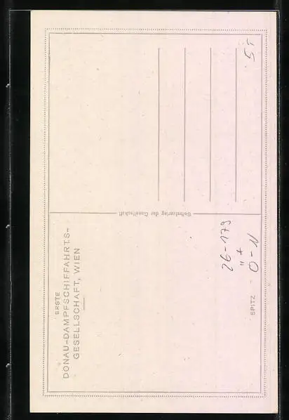 Personenbezogene Daten auf der Rückseite der Karte wurden durch blauen Textmarker unkenntlich gemacht. Die blauen Stellen sind auf die Vorderseite durchgeweicht und wirken sich negativ auf das Postkartenfoto aus