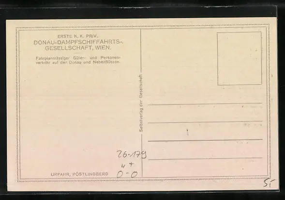Personenbezogene Daten auf der Rückseite der Karte wurden durch blauen Textmarker unkenntlich gemacht. Die blauen Stellen sind auf die Vorderseite durchgeweicht und wirken sich negativ auf das Postkartenfoto aus