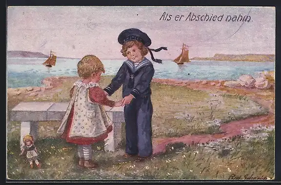 Künstler-AK Rudolf Schneider: Kleiner Matrose nimmt Abschied von seiner Freundin