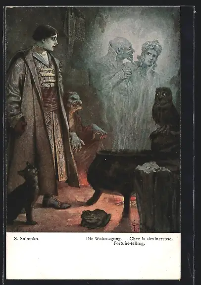 Künstler-AK S. Solomko: Mann erblickt eine übersinnliche Erscheinung, Die Wahrsagung