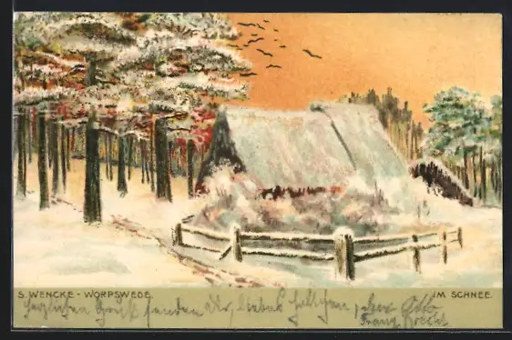 Künstler-AK S.Wencke: Häuschen im Schnee