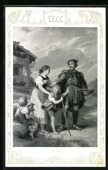 Künstler-AK Sage von Wilhelm Tell, Abscheid von der Familie