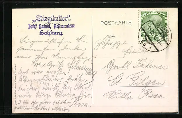 Künstler-AK Salzburg, Gasthaus Stieglkeller