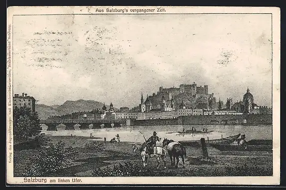 Künstler-AK Salzburg, Teilansicht am linken Ufer