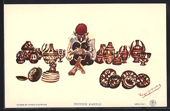 Künstler-AK Scènes et Types Algériens, Poterie Kabyle