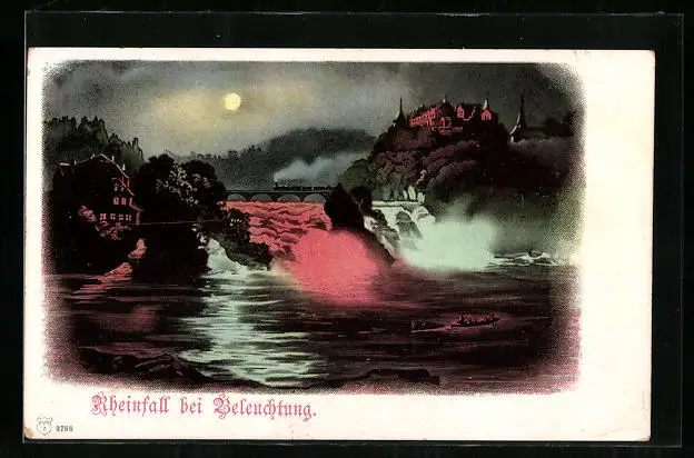 Künstler-AK Schaffhausen, Rheinfall bei Beleuchtung